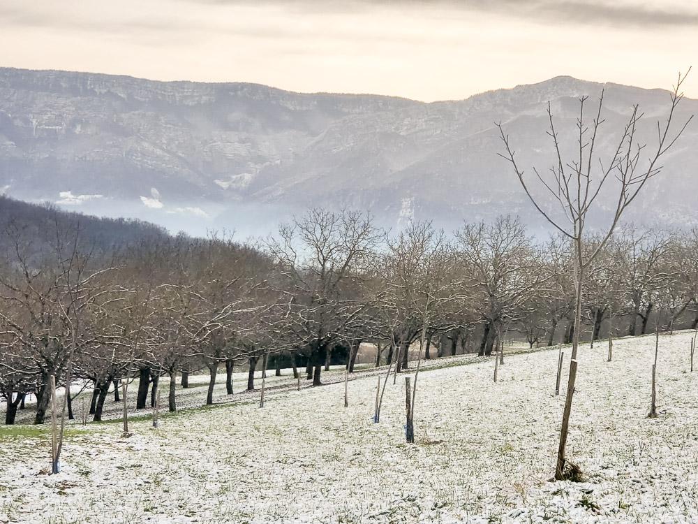 L’année 2022 a été une année très sèche et caniculaire. Cela a eu un impact négatif sur le calibre des fruits qui sont globalement plus petits qu’en 2021. Les deux mois sans pluie (du 15 juin au 15 août) ont fait beaucoup de mal aux arbres. Heureusement, sur la majorité de nos champs les noyers ont plutôt bien résisté grâce à des terres profondes et des réserves en eau correctes dans les sols suite à une année 2021 bien arrosée.